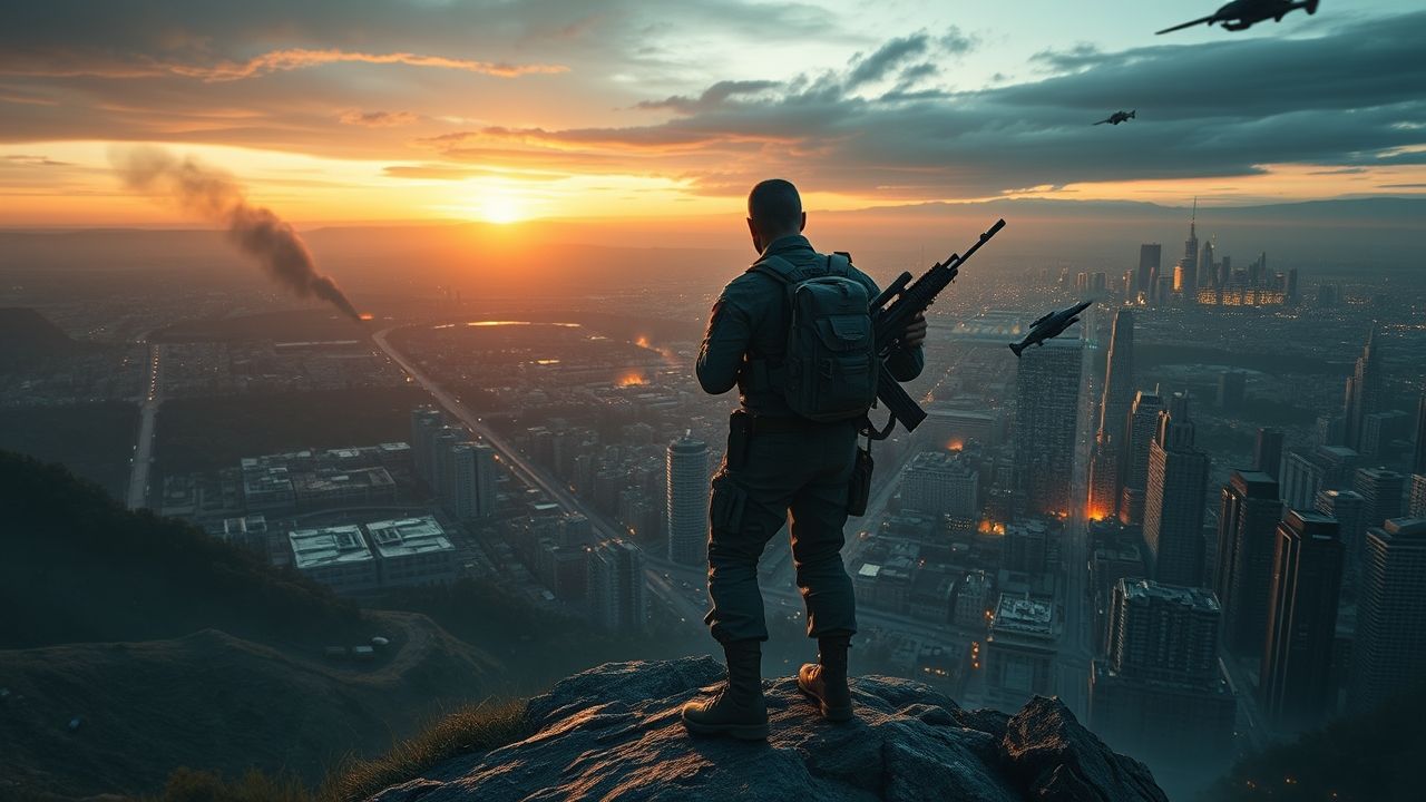 {"prompt":"A cinematic, wide (landscape) shot capturing the sweeping historical and cultural impact of the Call of Duty franchise. In the foreground, a lone, highly detailed modern military operator, clad in realistic tactical gear and holding an assault rifle, stands on a rugged, elevated vantage point, gazing out over an expansive, subtly blended panorama. The landscape below seamlessly transitions from a desolate, war-torn European WWII cityscape with faint, distant explosions on one side, to a dense, modern urban warzone with partially destroyed skyscrapers and tactical vehicles, and finally, merges into a sleek, futuristic city skyline with subtle flying vehicles and advanced architecture on the other. A section of this panorama also hints at a vast, open battle royale map with the faint outlines of players parachuting down, shrouded in a receding gas circle. The sky above is dramatic and evolving, shifting from a smoke-tinged, orange-hued sunset over the historical elements to a cool, twilight sky with digital glows over the futuristic cityscape, symbolizing the passage of time and technological advancement. Atmospheric volumetric dust and light rays pierce through the scene, adding depth and a sense of epic scale. The color palette is rich and varied, incorporating the desaturated greens, grays, and browns of military settings with vibrant oranges and reds from distant action, and cool blues and purples from advanced tech. The composition emphasizes the vastness and evolution of the gaming world, with the operator as a contemplative anchor. No text, logos, watermarks, or typographic elements present.","originalPrompt":"A cinematic, wide (landscape) shot capturing the sweeping historical and cultural impact of the Call of Duty franchise. In the foreground, a lone, highly detailed modern military operator, clad in realistic tactical gear and holding an assault rifle, stands on a rugged, elevated vantage point, gazing out over an expansive, subtly blended panorama. The landscape below seamlessly transitions from a desolate, war-torn European WWII cityscape with faint, distant explosions on one side, to a dense, modern urban warzone with partially destroyed skyscrapers and tactical vehicles, and finally, merges into a sleek, futuristic city skyline with subtle flying vehicles and advanced architecture on the other. A section of this panorama also hints at a vast, open battle royale map with the faint outlines of players parachuting down, shrouded in a receding gas circle. The sky above is dramatic and evolving, shifting from a smoke-tinged, orange-hued sunset over the historical elements to a cool, twilight sky with digital glows over the futuristic cityscape, symbolizing the passage of time and technological advancement. Atmospheric volumetric dust and light rays pierce through the scene, adding depth and a sense of epic scale. The color palette is rich and varied, incorporating the desaturated greens, grays, and browns of military settings with vibrant oranges and reds from distant action, and cool blues and purples from advanced tech. The composition emphasizes the vastness and evolution of the gaming world, with the operator as a contemplative anchor. No text, logos, watermarks, or typographic elements present.","width":1280,"height":720,"seed":42,"model":"flux","enhance":false,"nologo":true,"negative_prompt":"worst quality, blurry","nofeed":false,"safe":false,"quality":"medium","image":[],"transparent":false,"isMature":false,"isChild":false}