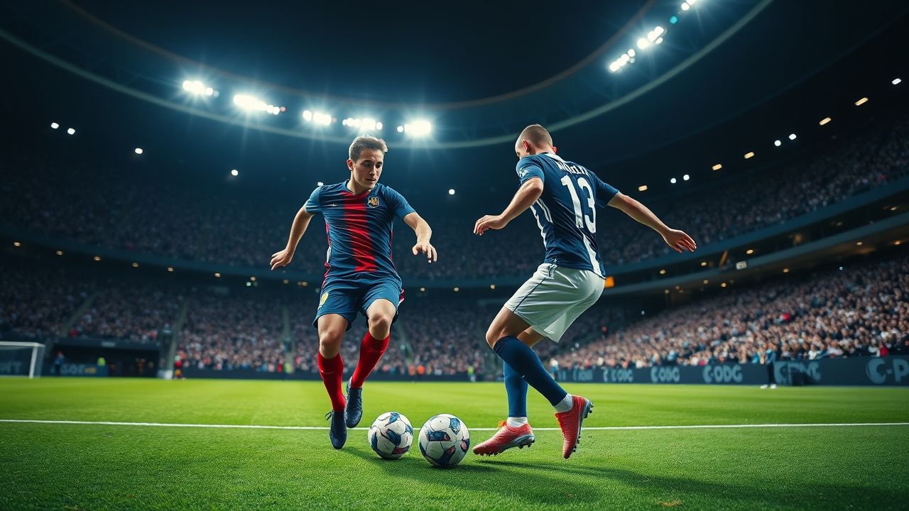 {"prompt":"A dynamic wide-angle shot of a high-stakes football match in a grand, modern European stadium at night. Two players, one in a vibrant dark blue and red kit, and another in a stark white and navy blue kit, are captured in mid-action, intensely contesting a ball in the central midfield. Their movements are fluid and powerful, conveying speed and determination. The meticulously kept green pitch is brilliantly illuminated by powerful overhead floodlights, casting dramatic, sharp shadows that highlight the players' forms. In the background, the vast stadium stands are blurred, showing a sea of passionate fans, creating a vibrant, energetic atmosphere with subtle glows and reflections. The overall lighting is dramatic and high-contrast, emphasizing the intensity and grandeur of the event. The scene is free of any text, logos, or identifying marks, focusing purely on the athletic spectacle and the clash of colors representing two major European football powers.","originalPrompt":"A dynamic wide-angle shot of a high-stakes football match in a grand, modern European stadium at night. Two players, one in a vibrant dark blue and red kit, and another in a stark white and navy blue kit, are captured in mid-action, intensely contesting a ball in the central midfield. Their movements are fluid and powerful, conveying speed and determination. The meticulously kept green pitch is brilliantly illuminated by powerful overhead floodlights, casting dramatic, sharp shadows that highlight the players' forms. In the background, the vast stadium stands are blurred, showing a sea of passionate fans, creating a vibrant, energetic atmosphere with subtle glows and reflections. The overall lighting is dramatic and high-contrast, emphasizing the intensity and grandeur of the event. The scene is free of any text, logos, or identifying marks, focusing purely on the athletic spectacle and the clash of colors representing two major European football powers.","width":1280,"height":720,"seed":42,"model":"flux","enhance":false,"nologo":true,"negative_prompt":"undefined","nofeed":false,"safe":false,"quality":"medium","image":[],"transparent":false,"isMature":false,"isChild":false}